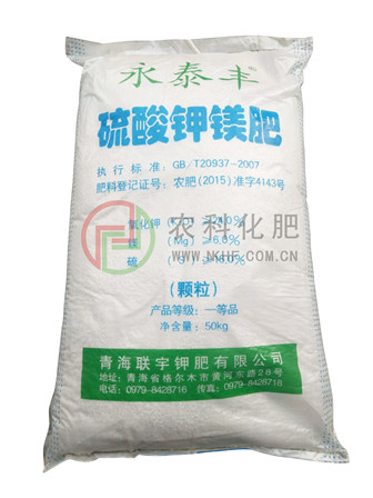 “永泰丰”牌硫酸钾镁肥◆商标及名称:“永泰丰”牌硫酸钾镁肥◆成份及含量:氧化钾(K2O)≥22%,镁(Mg)≥5%,硫(...