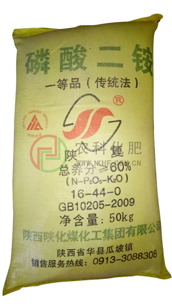 【商品简介】高性能氮磷二元肥料,物理中性肥料,可适用任何土壤及绝大多数作物,特别适用于喜铵需磷的作物,作基肥或追肥均可,宜深施。用作脲醛树脂胶黏剂的固化剂,配成20%水溶液,固化速度最慢。还用作添加型阻燃剂。若于天然橡胶乳液中加入少量DAP,能有效地消除胶乳中的镁离子,不致降低硫化后天然胶乳的拉伸强度。呈灰白色或深灰色颗粒,在潮湿空气中易分解,挥发出氨变成磷酸二氢铵。水溶液呈弱碱性,pH8.0。与尿素、硝铵、 氯化铵可混性好,是生产多元复肥、 BB肥的理想基肥。对水稻、小麦、玉米、高梁、棉花、瓜果、蔬菜等各种粮食作物和经济作物增产增收效果较好;广泛适用于红壤、黄壤、棕壤、黄潮土、黑土、褐土、紫色土、白浆土等各种土质;尤其适合于我国西北、华北、东北等干旱少雨地区施用。