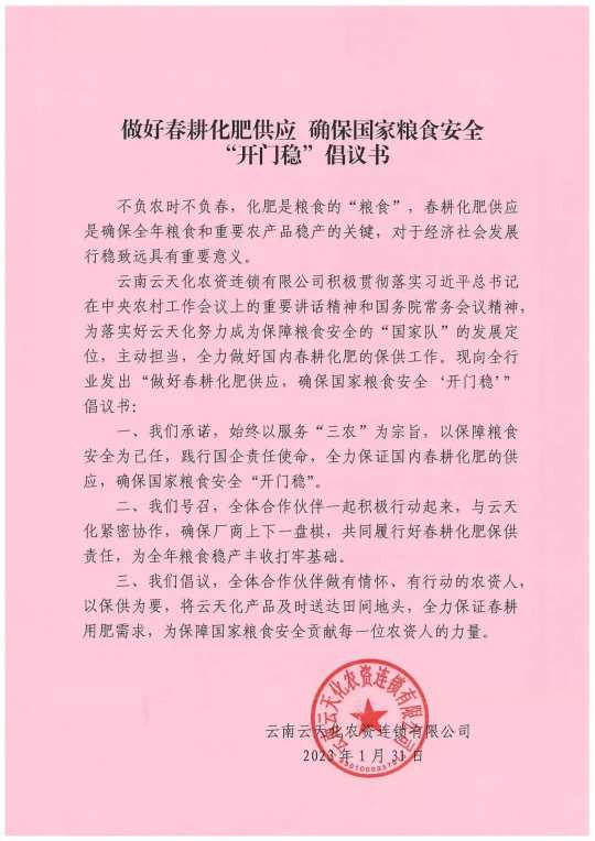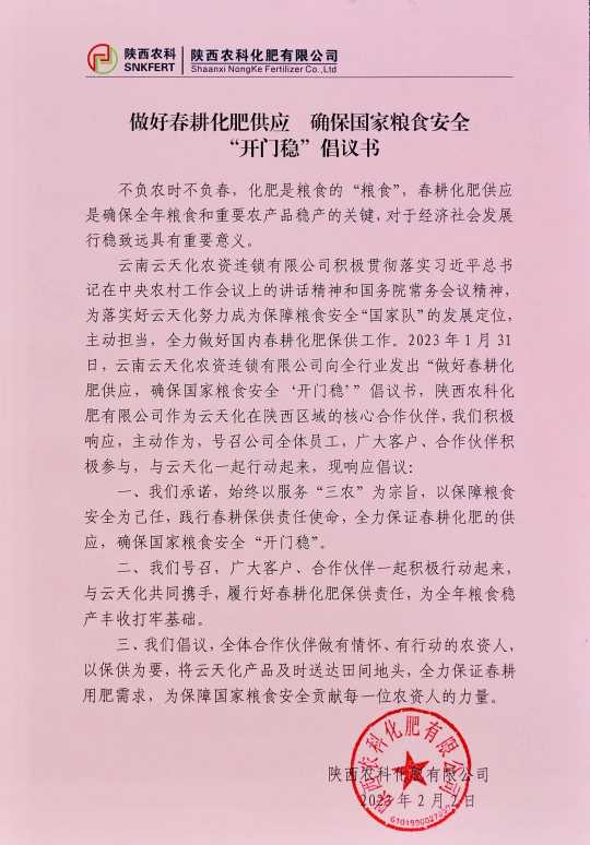陕西农科积极响应云天化倡议:做好春耕化肥供应,确保国家粮食安全“开门稳”