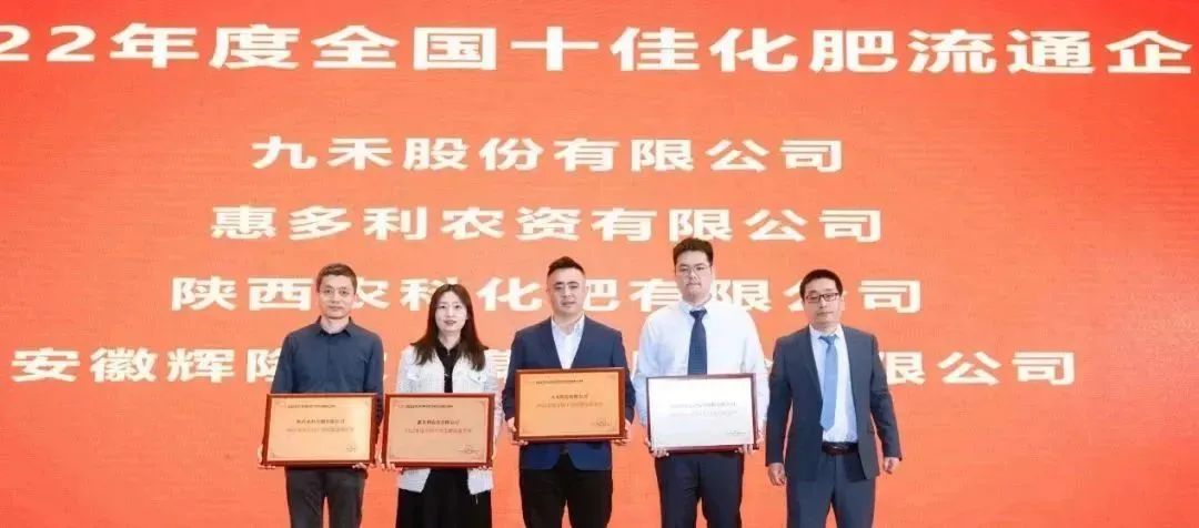 2月16日,2023(第十届)国际化肥产业链研讨会暨客户见面会在湖北武汉成功举办,研讨当下市场走向、展望行业趋势,共谋合作、共商发展。会议期间,举行了“2022年度全国化肥影响力优秀品牌”和“2022年度全国化肥优秀流通企业”颁奖典礼,陕西农科化肥有限公司参加此次会议并与战略合作伙伴九禾股份有限公司获评“2022年度全国十佳化肥流通企业”。公司上游战略合作伙伴云南云天化股份有限公司、陕西陕化煤化工集团有限公司、泸天化(集团)有限责任公司荣获“2022年度全国化肥十佳影响力品牌”。